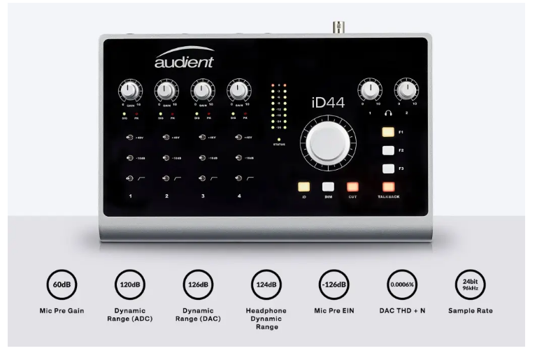 D44是Audient最強大的錄音介面。 iD44擁有4個Audient MIC CONSOLE前級,領先的轉換器技術,ADAT可擴充性以及更多功能,可在桌面上提供Audient控台的音頻性能,提供應有的專業聲音。