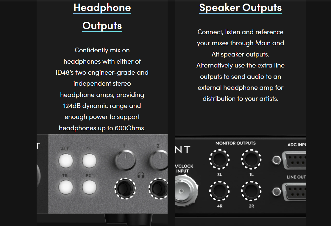 Utilising 32-bit ESS DAC converter technology to minimise quality loss and maximise performance during conversion, iD48 makes sure your audio sounds cleaner, clearer and more precise than ever. And with 126.5dB of dynamic range, you will hear subtle details better and identify problematic issues faster – making getting release ready results easy.