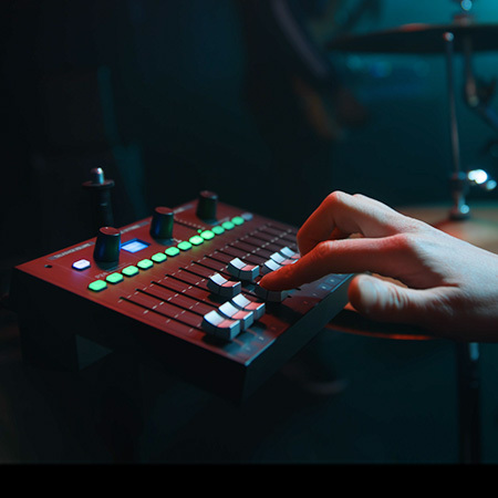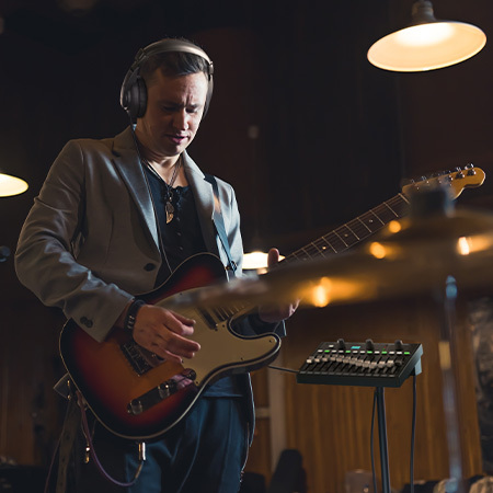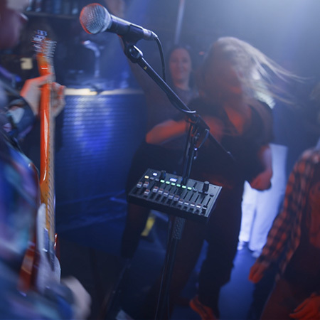 In a recording studio, P24's integrated mics can be used to communicate with the engineer outside the booth. In a live environment, an auxiliary mic and foot switch can be used to 'play the chorus again'. Regardless of the use-case, P24 has a solution for you.