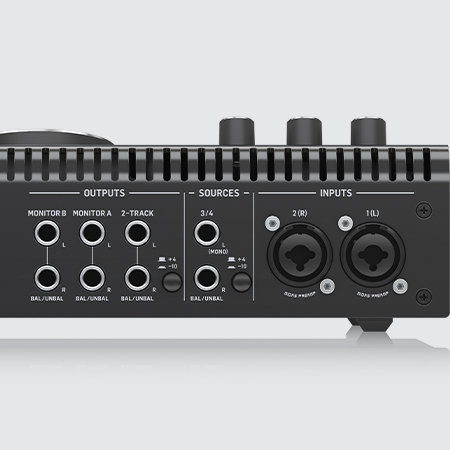 The first 2 inputs can be fed by a line source or any type of microphone, in any combination – operating in dual mono or stereo-link mode. Not to mention the 2-Track output which can be used for a variety of applications. Connect a 2-track digital recorder, an additional soundcard, mixer or whatever you require.