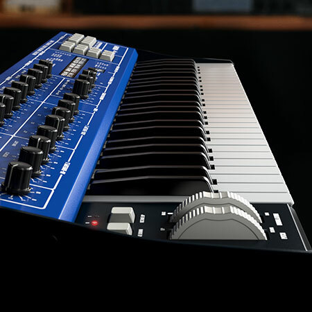 49 full-size keys featuring velocity, aftertouch and polyphonic portamento for expressive playability