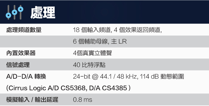 . 6輔助和主左右母線插口,全動態處理器和6頻段參數或31段圖形均衡