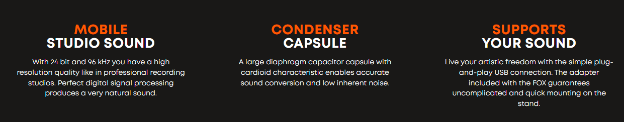 With its classy style and outstanding design elements, FOX fits in every home studio or any place away from home. No melody will be lost because your studio is always with you. Record songs, podcast and much more with the according software.