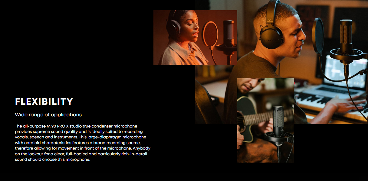 beyerdynamic’s M 90 PRO X true condenser microphone is a XLR microphone for home, project and studio recording. The microphone is the perfect choice for recording vocals, speech and instruments. In addition to its warm, detailed sound, the M 90 PRO X offers an exceptional signal-to-noise ratio, optimal attenuation of popping sounds and excellent workmanship. It meets the requirements and needs of today’s creators.