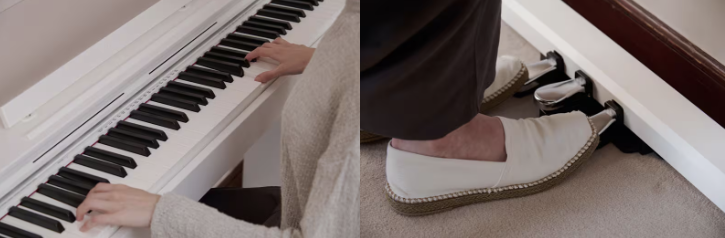 白色琴鍵表面仿似象牙,而黑色琴鍵則呈現類似黑檀木的質感,即使長時間彈奏依然舒適自在、倍感奢華。