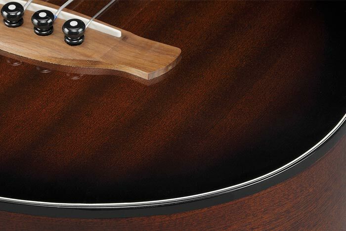 Sapele back and sides offer a full-bodied and warm mid-range and a bright tone.