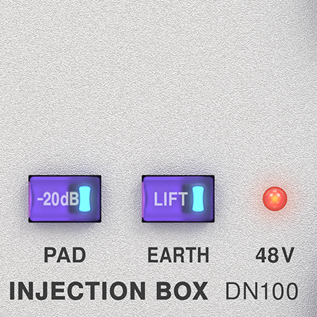 DN100 features illuminated Pad and Earth Lift switches, which along with the +48V phantom power indicator LED, provide ‘at a glance’ status display, even at wide distances and viewing angles.