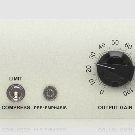 The controls on the 2A-KT consist of a Pre-Emphasis trimmer which adjusts the compressor / sidechain interaction. When set fully clockwise, the sidechain responds to the full frequency bandwidth of the incoming audio. As the trimmer is turned counterclockwise, the compressor responds less to the signal's high frequency transients. The Peak Reduction knob controls the threshold of the compressor/limiter with an available maximum 40 dB of gain reduction. The Output Gain knob provides any makeup gain necessary for setting the output signal to the optimal level.