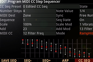 透過16個同步 MIDI CC 步進音序器來調製音序,為音色增添活力。