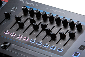 9個推子、9個旋鈕和10個按鈕,都是程式控制的。用於內部控制音量、相位、濾波器、濕/乾效果、包絡線、靜音等。用於外部傳輸所需的 MIDI 連續控制器到您的DAW 主機。