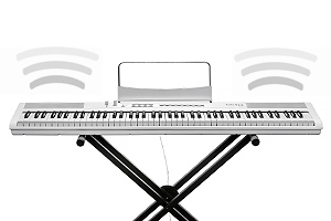 88 note, semi-weighted action keyboard with adjustable touch sensitivity.