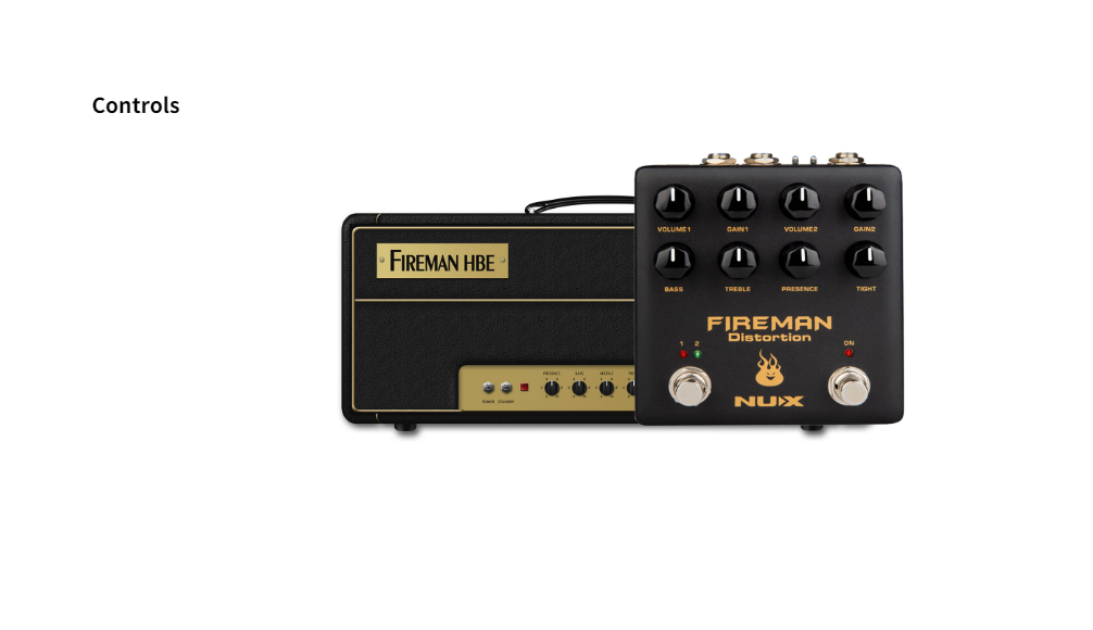 FIREMAN是基於經典音箱創作者David Friedman有名的失真效果器BE-OD所開發的“現代Brown Sound”,音色相當接近FIREMAN經典音箱HBE100的失真。帶有兩個獨立的VOLUME及GAIN控制旋鈕,可以滿足節奏吉他及Solo獨奏的音色應用,FIREMAN還提供了True-Bypass及Buffer-Bypass切換開關,內部9V/18V切換開關。讓你針對效果鏈位置來切換True-Bypass或者Buffer-Bypass。內部升壓18V提供你更寬廣的動態範圍。