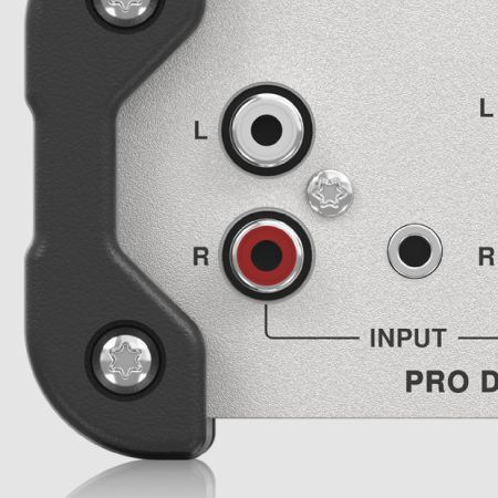 DI 22P PRO DI AV 2 Inputs are: 2 x 1/4" TS; 2 x RCA ; and 1 x 1/8" TRS connectors, which can accommodate virtually any type of signal – for the utmost in versatility. The genuine Neutrik * Output XLR jacks send balanced versions of the input signals to your mixing board or other processing device.