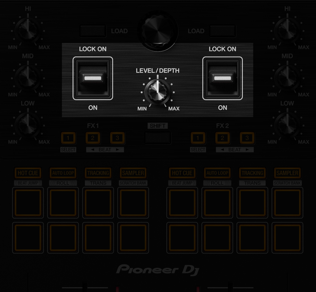 本公司首次將TEMPO SLIDER水平放置於DJ控制器轉盤上側,比DDJ-SB3更長。 此外,混音器部分配備了PERFORMANCE PADS和LEVER FX,效果和SAMPLER、搓碟和快速混音操作變得更加輕鬆。