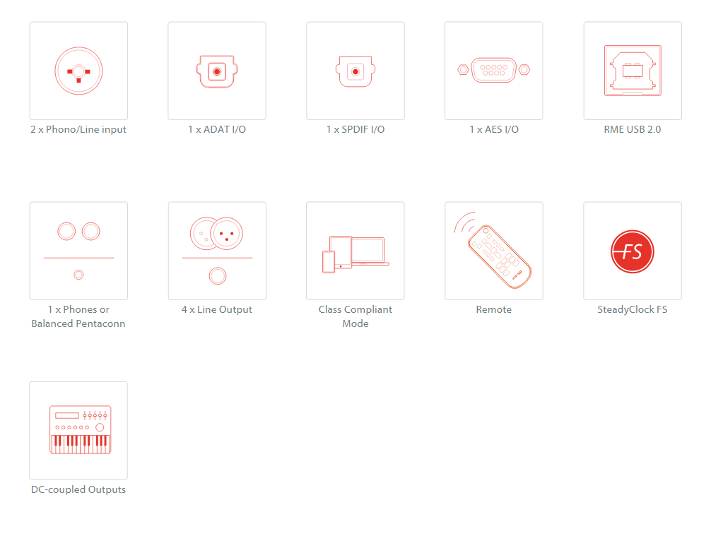 Also available are optical SPDIF I/O, which also understands ADAT, as well as coaxial SPDIF (RCA) and AES I/O (XLR) via an included breakout cable. This universal set of I/O options offers superior quality and flexible connectivity to those who take a no-compromise approach to audio.