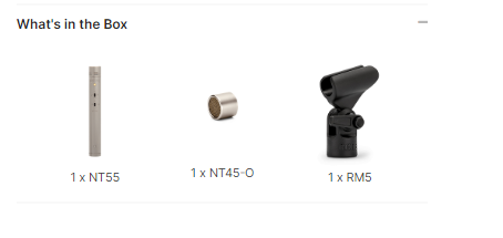 NT55 是一款多功能小振膜電容麥克風,專為關鍵錄音應用而設計。 它配備 1/2 英吋的鍍金心形電容音頭,可提供平滑、平衡的聲音和極低的本底噪音。 為增加靈活性,它配有一個三位衰減器(0、 -10dB、-20dB)和三級高通濾波器(平坦、75Hz、150Hz),並配有 NT45-O可互換全向音頭。 NT55 具有非常準確的心形拾音模式和寬頻響應能力,因此非常適合錄製從原聲樂器到鼓頂部和鈸,再到現場表演和現場對話的所有內容。 這款產品也可作為經過認證的配對麥克風用於立體聲錄音。
