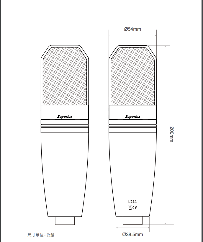 (全能型 ) Superlux L211 Condenser microphone 1"純金蒸發3μm超薄振膜 電容錄音咪