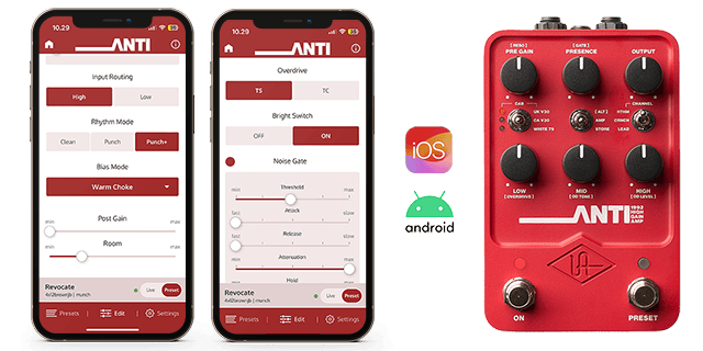 With the UAFX mobile app, you can pull up presets designed by pro guitarists or sculpt and save your own sounds to recall at any time. Plus the app unlocks deep customization for your pedal, allowing you to tweak hidden controls, boosts and noise gate settings , and even adjust output tube biasing.