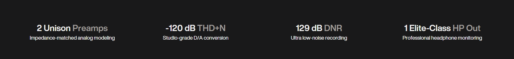 Two Unison™ mic preamps, Hi-Z instrument input, optical Toslink input (ADAT or S/PDIF)