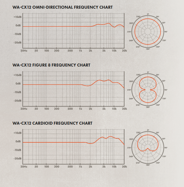 The WA-CX12 sound profile is known for capturing the real sound of a performance. Designed to provide clarity in the midrange and smooth out any high end harshness, the WA-CX12 delivers professional solo vocals, intricate piano performances, and epic, natural room sounds. Like the original, the WA-CX12 tone is mostly flat until a slight dip at 2kHz with a gradual boost between 5-10kHz.